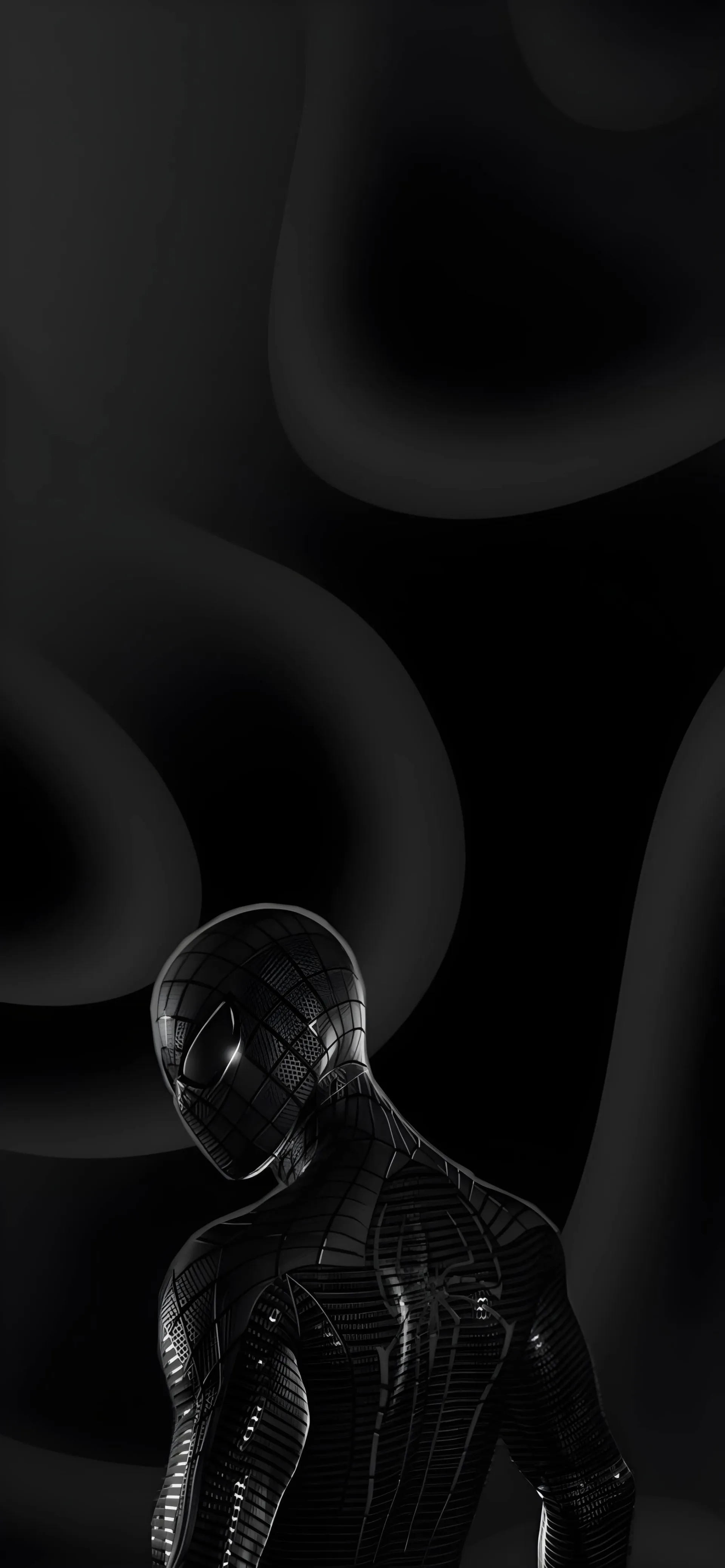 This premium Spider-Man 3D wallpaper features a close-up of the iconic textured suit in a sleek monochrome finish. Download this 3D wallpaper to give your iPhone a bold, cinematic aesthetic with high-contrast shadows.