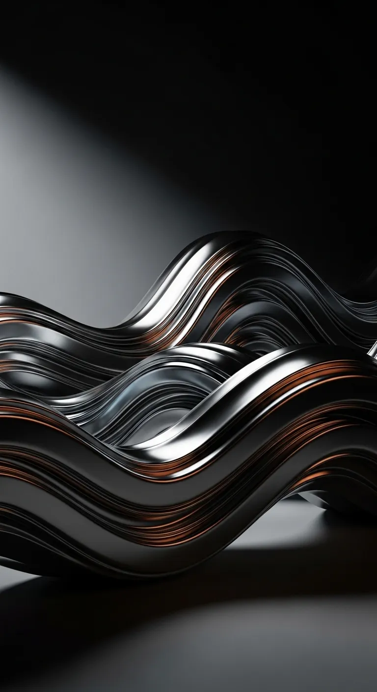 Fluid Chrome 3D Waves Dark Mobile Wallpaper