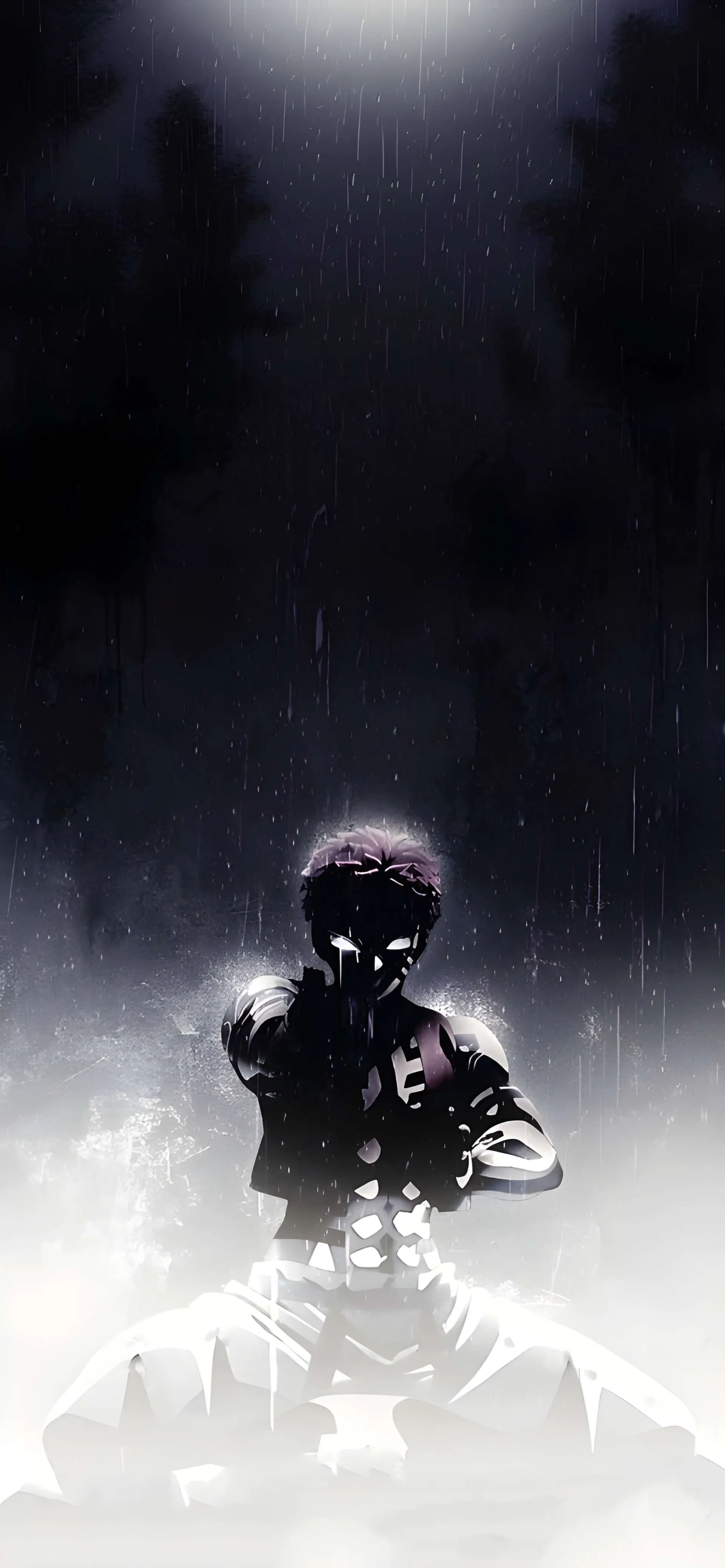 Download this Sasuke 4K wallpaper for your iPhone, showcasing the character in a dark, rainy setting with glowing white eyes. This wallpaper captures his intense posture and dramatic lighting.