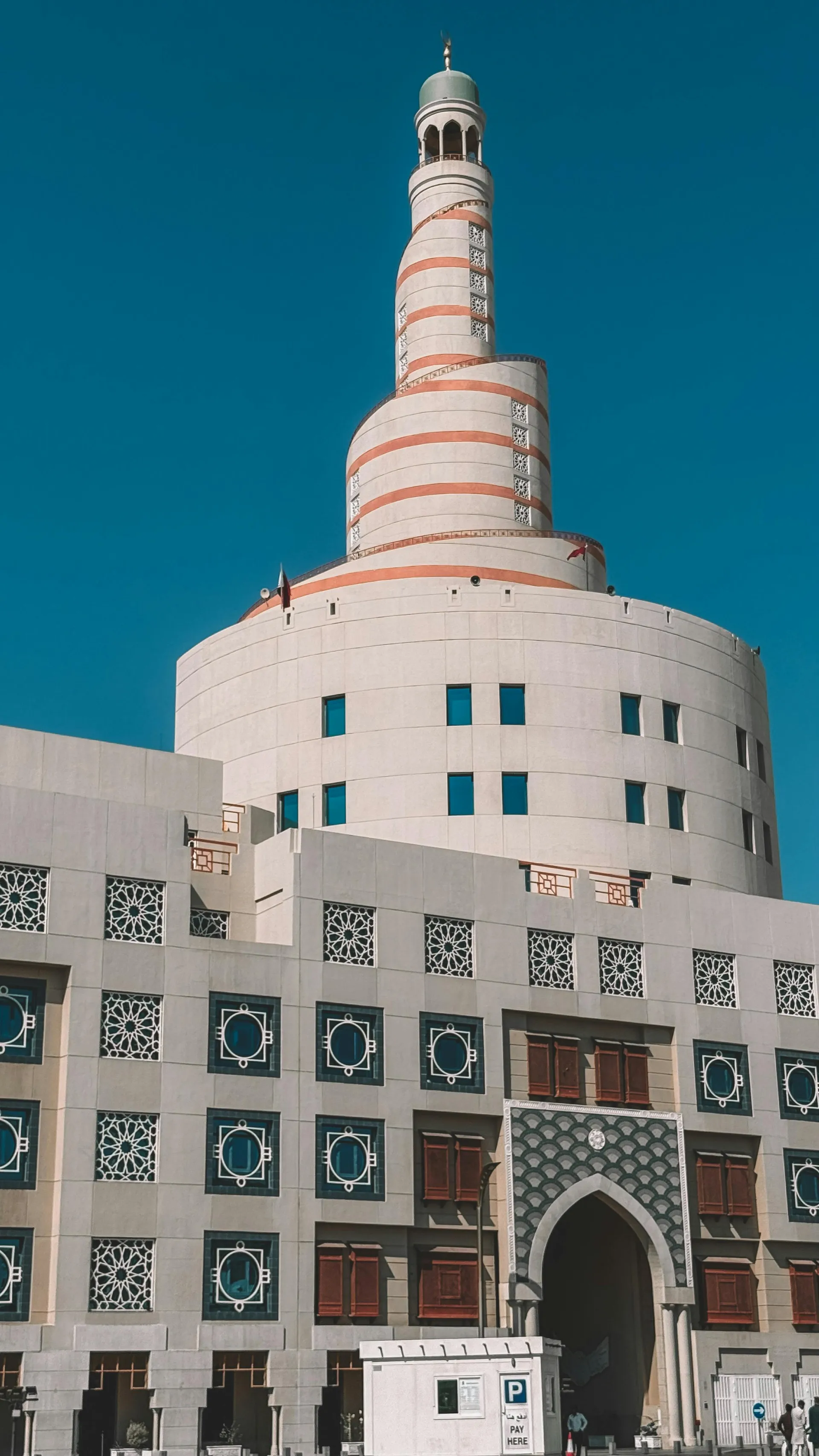 Free Captivating view of the Spiral Mosque, a notable landmark in Doha, Qatar, under clear blue skies. Stock Photo