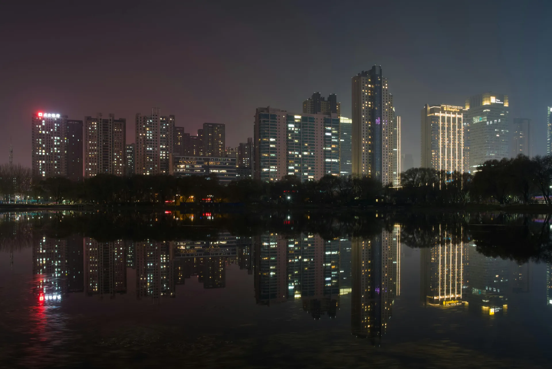 Free Captivating cityscape of Shenyang, China reflecting in a lake at night. Stock Photo