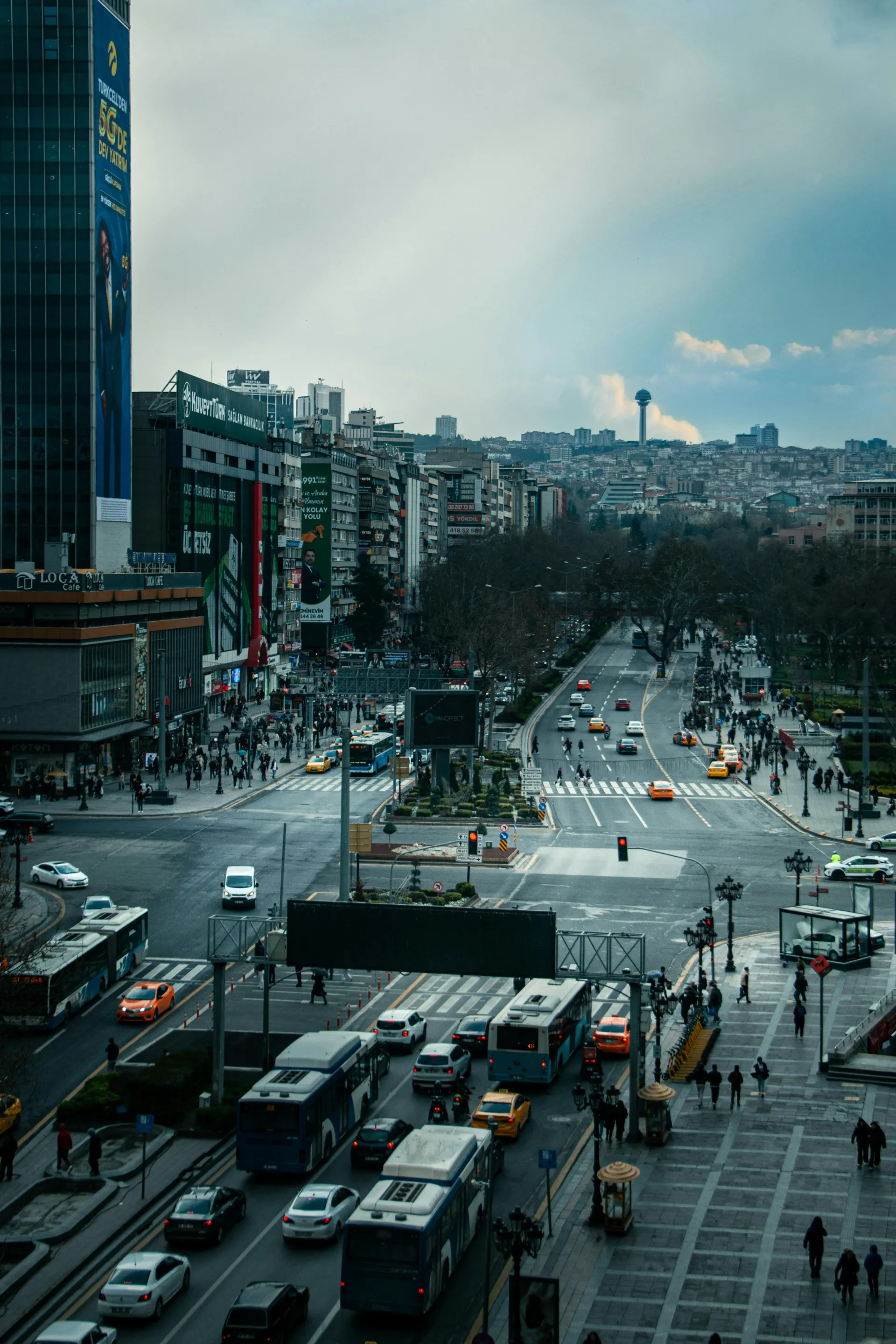 Free A busy scene of Kızılay Square in Ankara, Turkey, featuring urban life and transportation during winter. Stock Photo