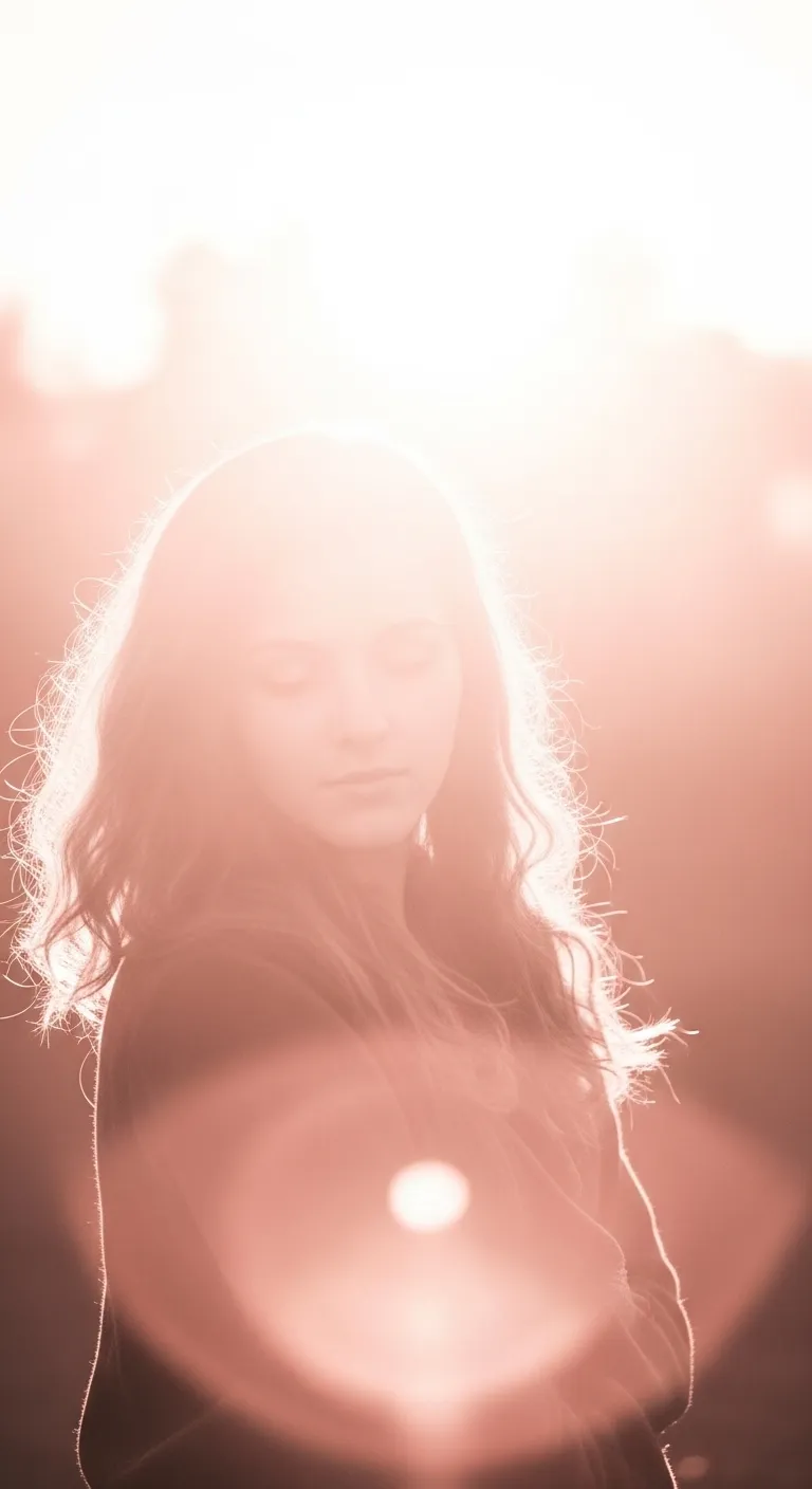 Silhouette of a woman with a bright sun flare behind her.