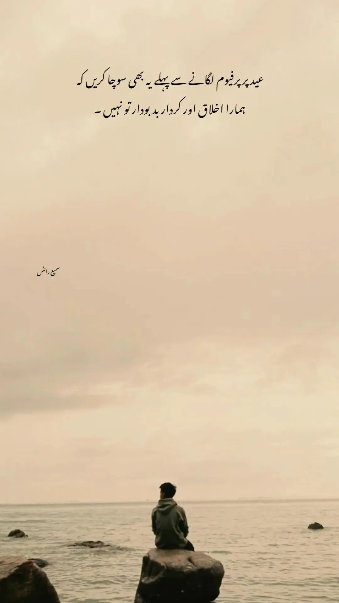 A person sitting by the sea at dawn