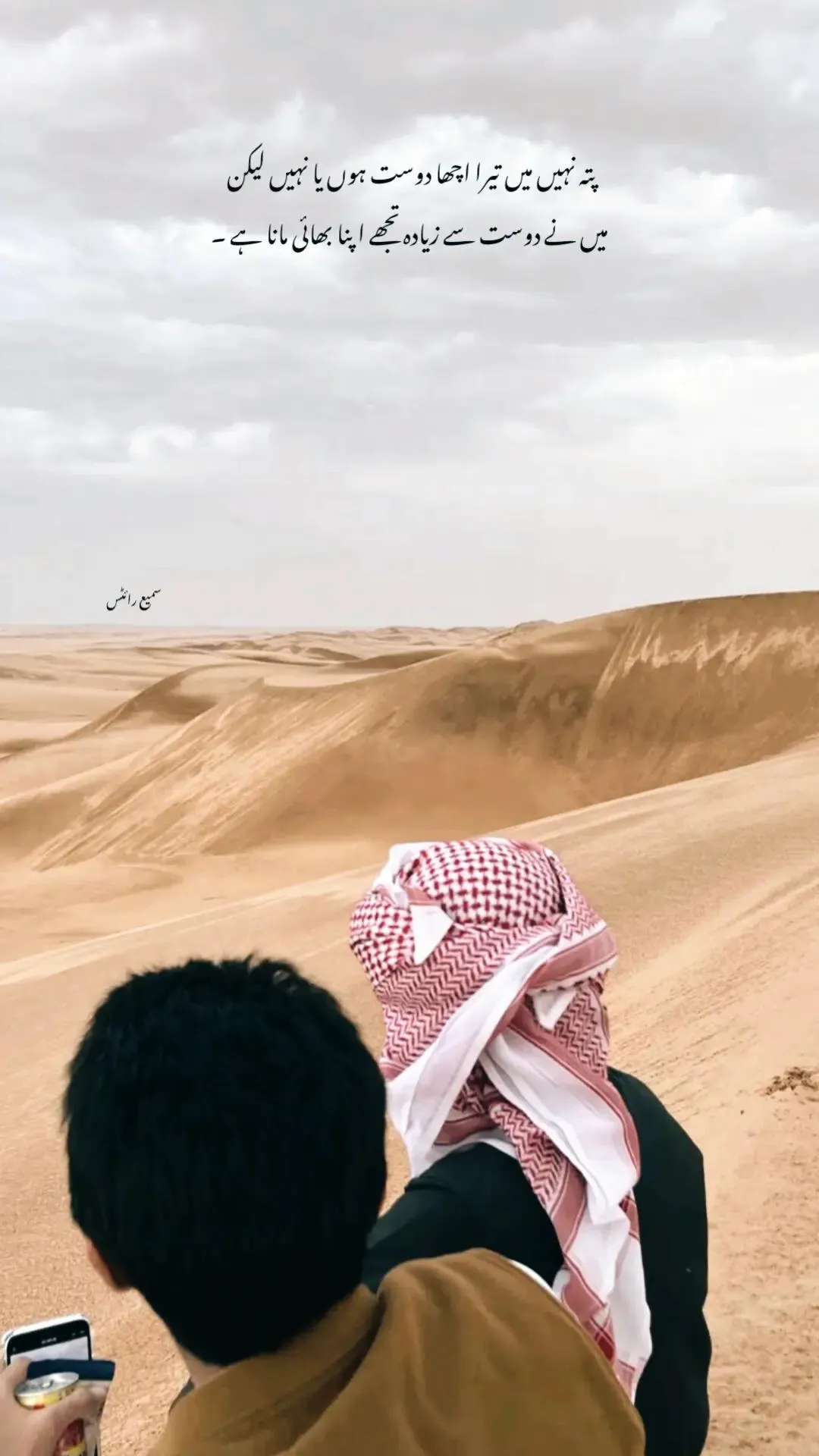 Two friends sitting in the desert