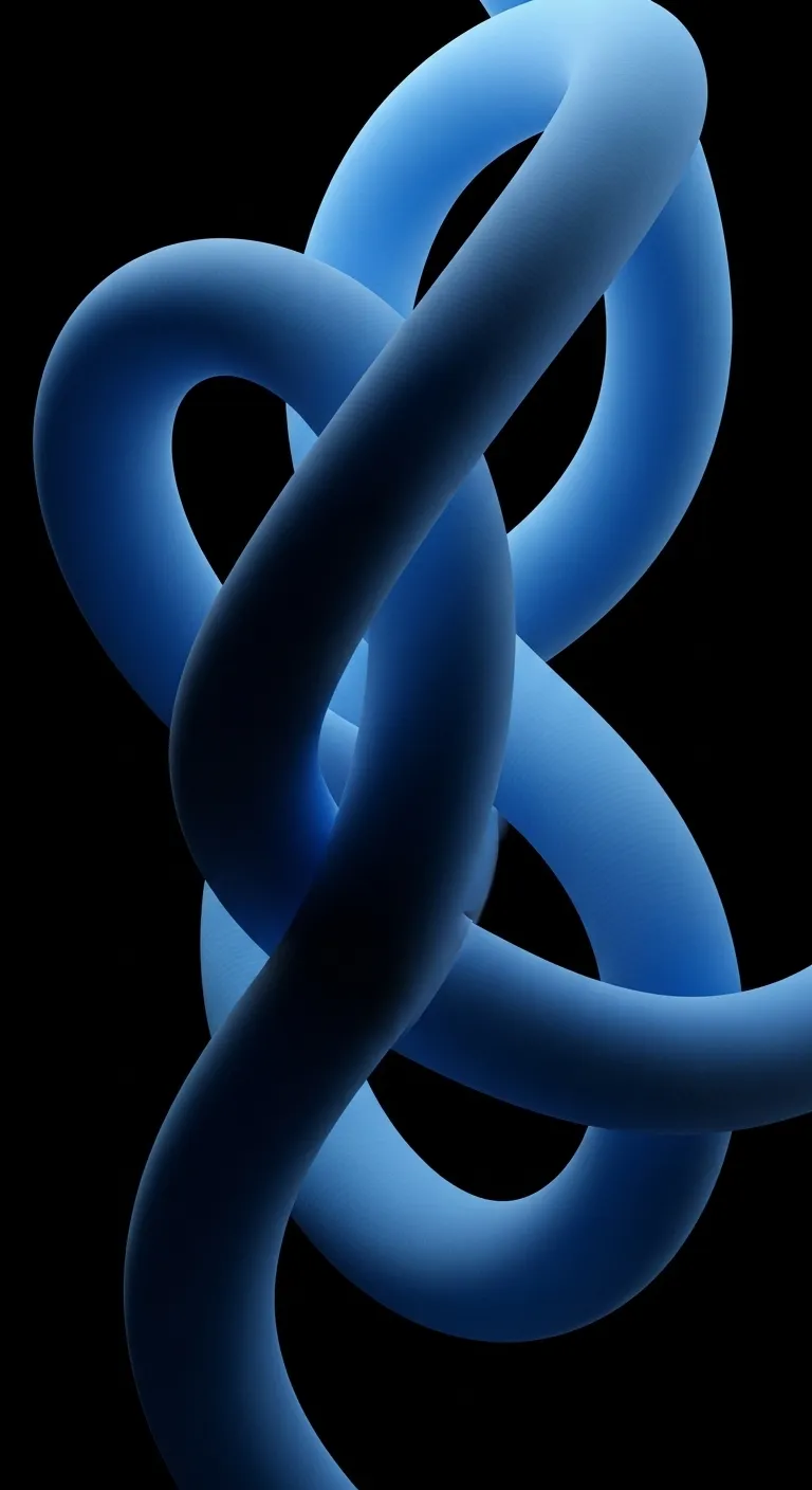 Complex intertwined navy blue 3D pipes on black.