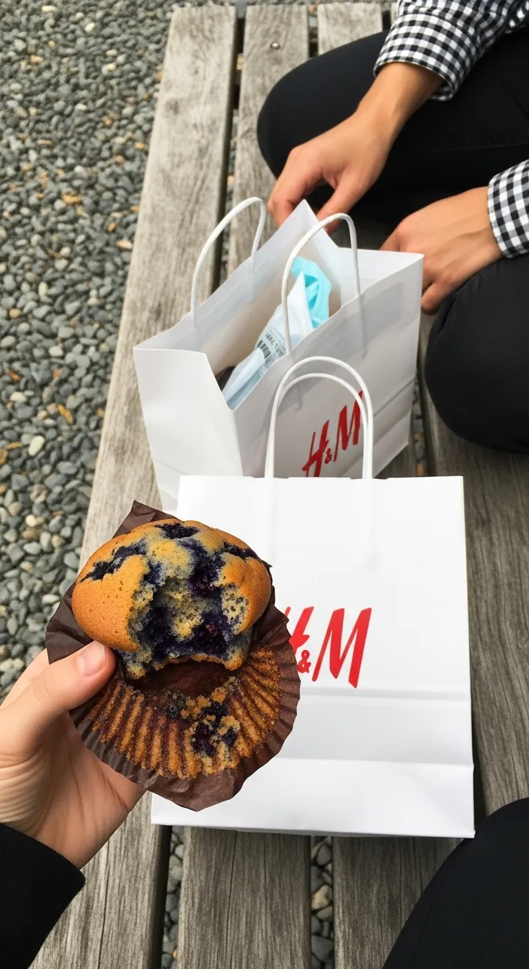 Blueberry Muffin Break During a Shopping Trip